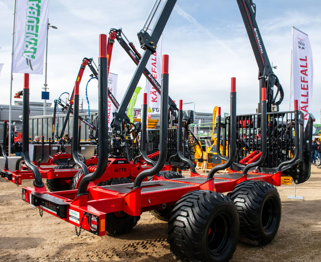 Agra 2026 which took place from 9-12 April last week came with some rain but also beautiful weather, with sunshine, blue skies and many good discussions with interested vistors in Arneuba Landtechnik & Fahrzeuge GmbH stand F1B41 in Freigelände 1 area. In the stand they had a large range of Källefall forestry trailers. Especially the brand new double frame FB70D trailer with a loading capacity of 7 tons and an allowed total weight of 9 tonnes but also the smaller 3 tonne FB30D with insert plates got a whole lot of attention from visitors.