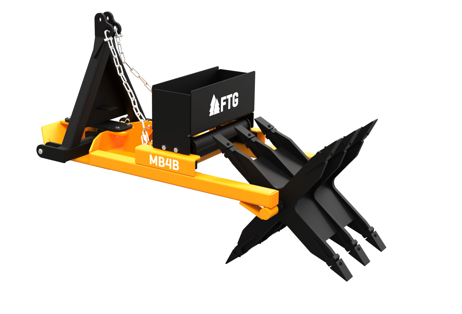 The FTG MB4B scarifier is mounted on the tractor’s three-point hitch. It is articulated to follow the terrain up and down, also when turning.